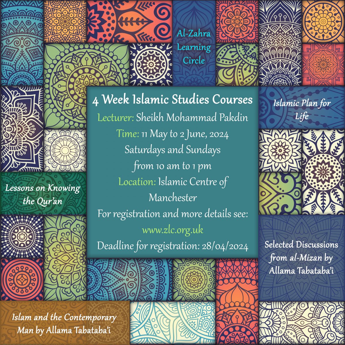 The program is consisted of four modules in the forms of Taught-Course and Book-Club and you may choose any modules you wish! The program will be on Saturdays and Sundays, Starting from 11 May to 2 June, at the Manchester Islamic Centre. The deadline for registration is 28 April, 2024, 18: 00 pm.